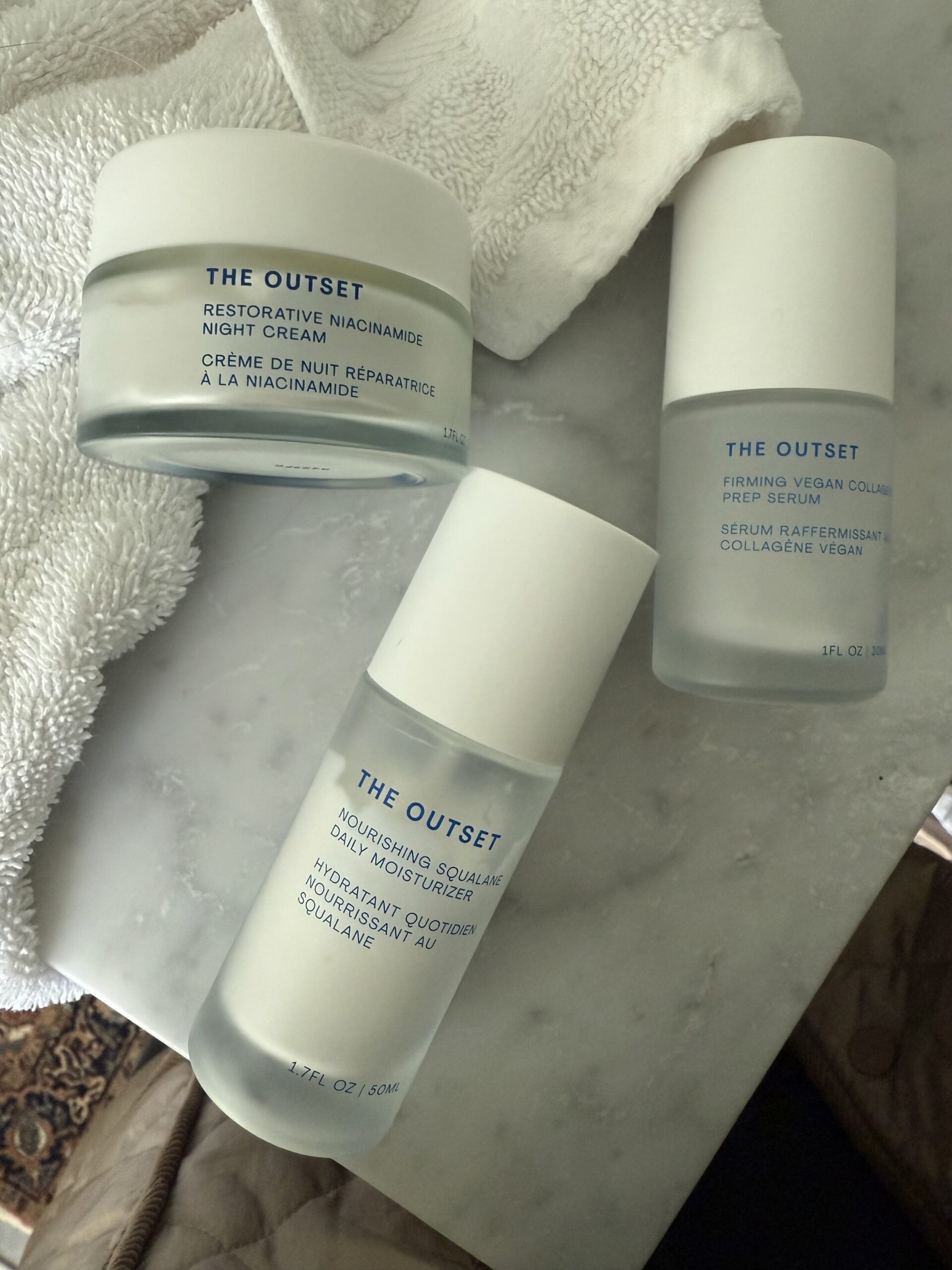 For daily hydration and overall balance, I’ve been consistently reaching for The Outset for over a year now, and it’s become my steady trio. I don’t usually gravitate toward celebrity brands, but Scarlett Johansson truly created something thoughtful here. I rotate between the collagen serum, the daily moisturizer, and the nighttime cream, and they’ve given my skin a calm, supported feeling rather than an overly “treated” look. There’s something reassuring about a routine that feels uncomplicated but effective, especially when your skin is sensitive or reactive.