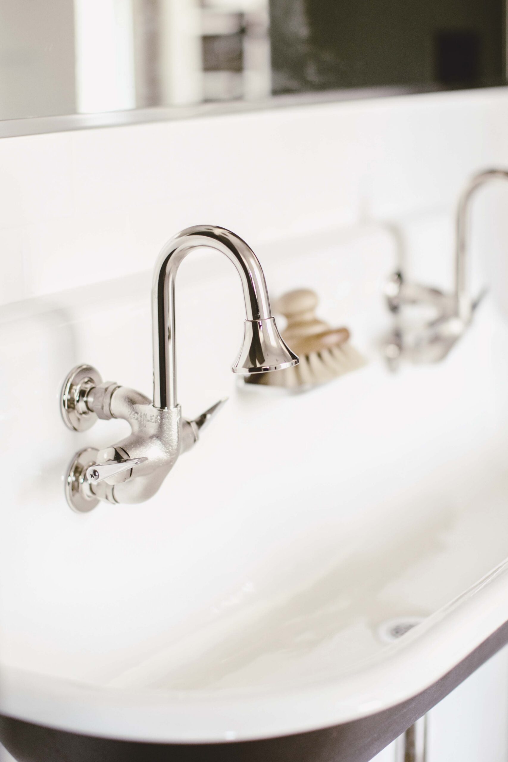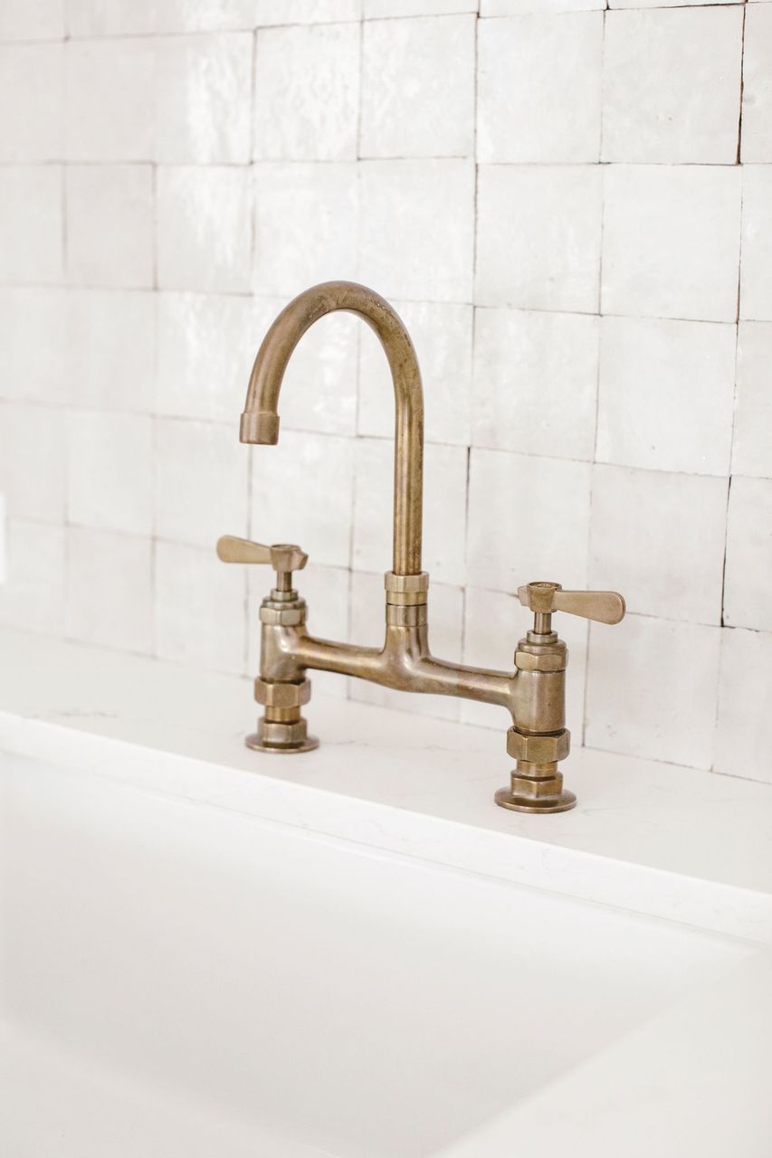Bridge faucets are probably my forever favorite. There’s something so charming and old-world about the exposed bridge and cross handles. They feel like they belong in an early 1900s kitchen or bath and instantly add architectural interest. Wall mount faucets are another favorite, especially paired with cast iron or schoolhouse sinks. They feel thoughtful and custom, almost like something you’d see in an old utility room or butler’s pantry. And then there are the simple widespread faucets with cross or porcelain handles, which are understated but endlessly classic and perfect for everyday family spaces.